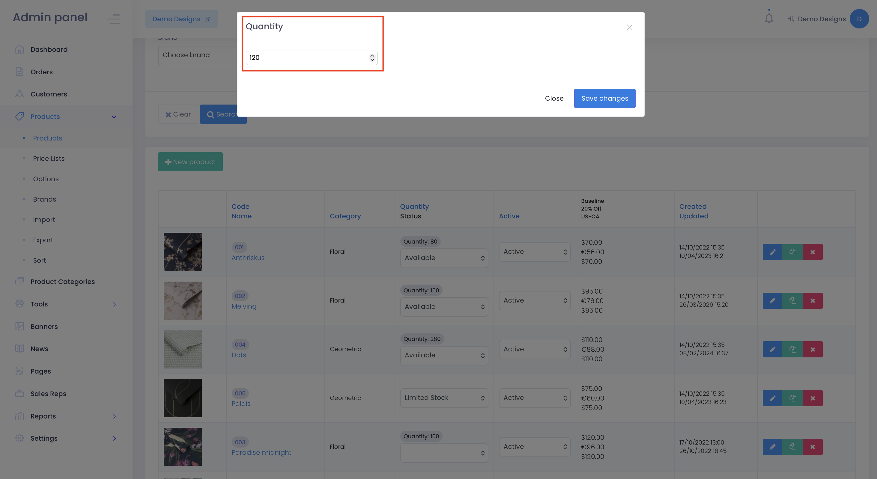 Step 3. Update the product’s quantity in the pop-up window that appears and click “Save changes.”