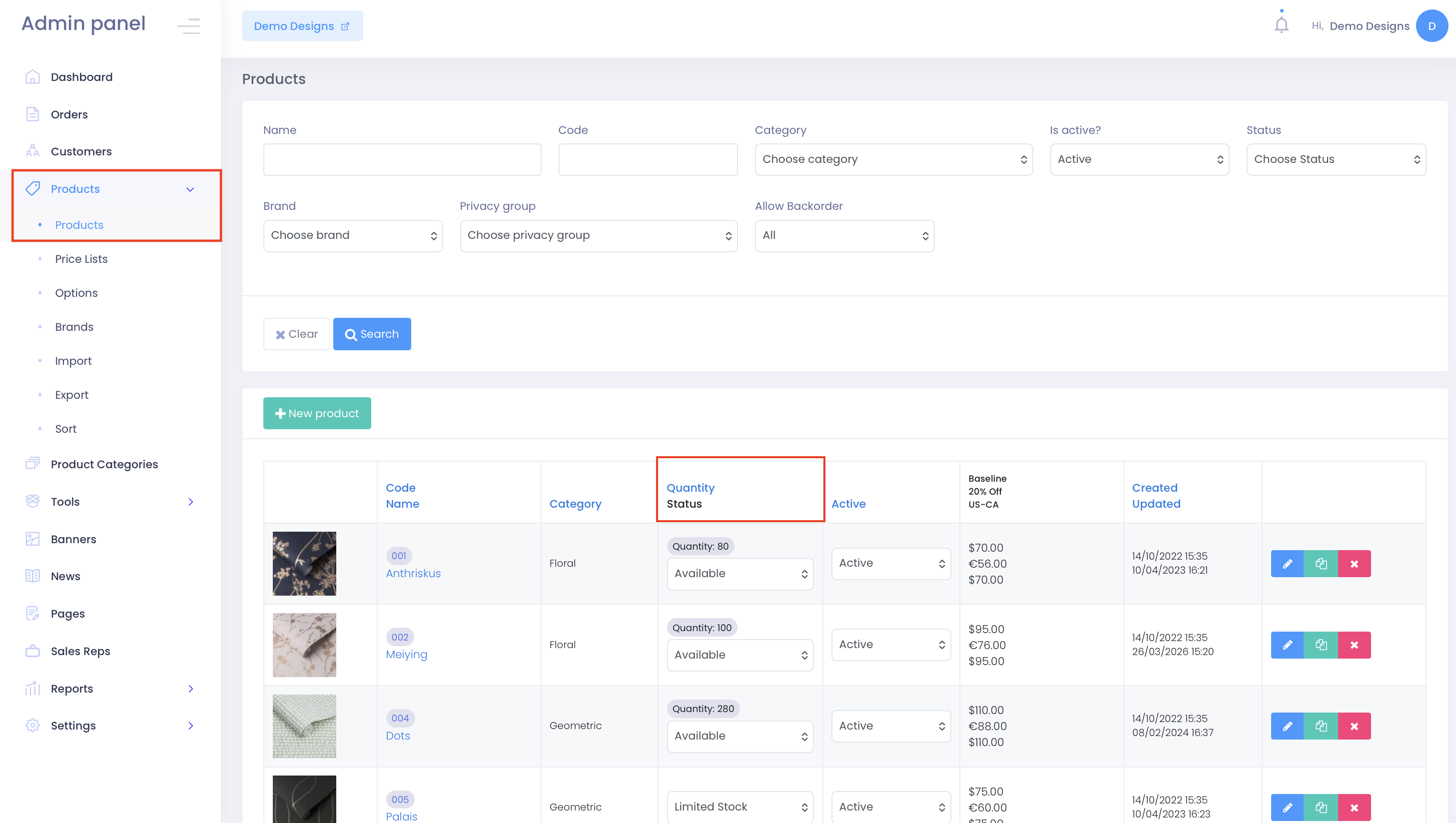 Step 2. Go to the “Quantity” column and click on the product whose quantity you want to update.