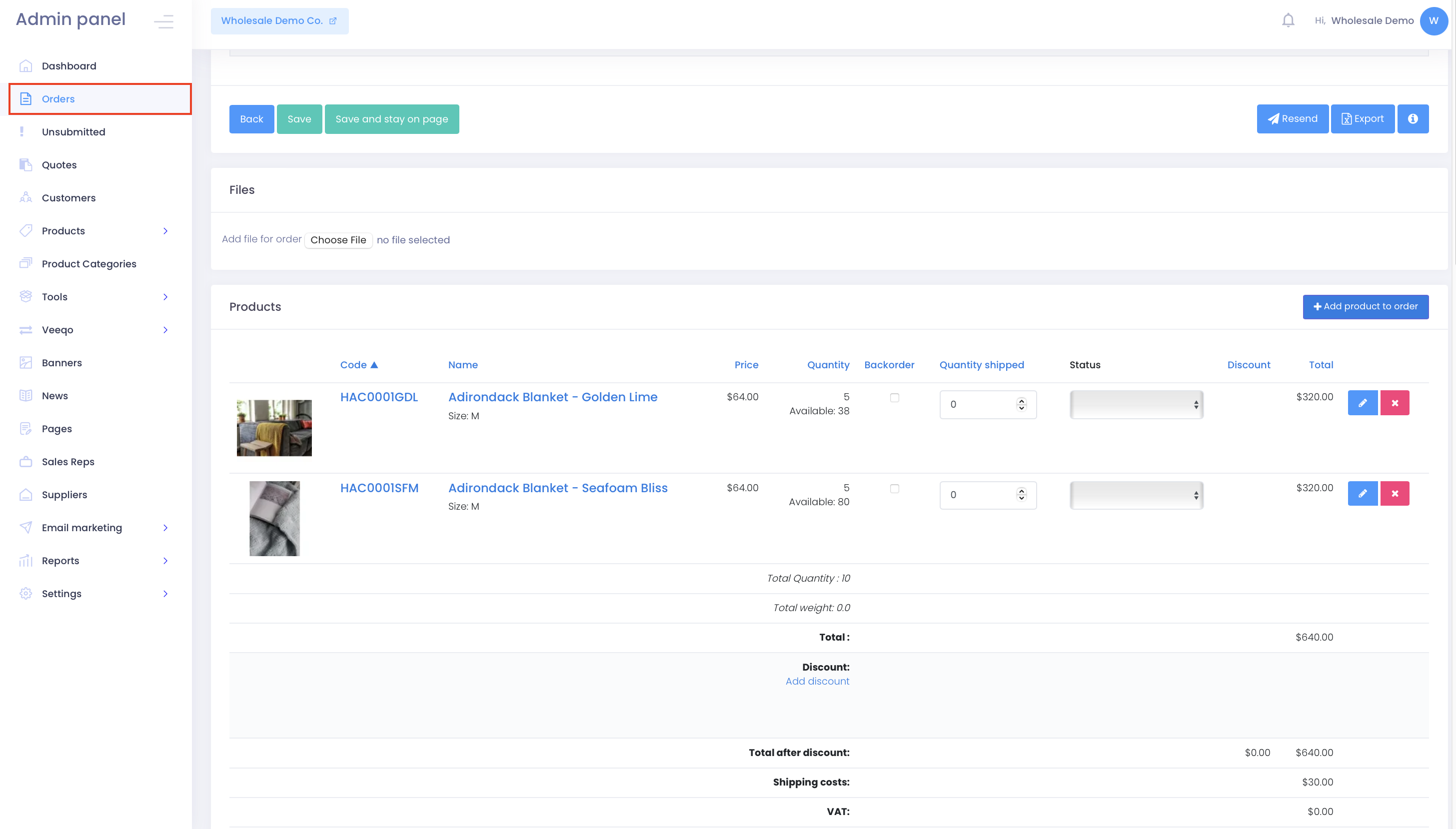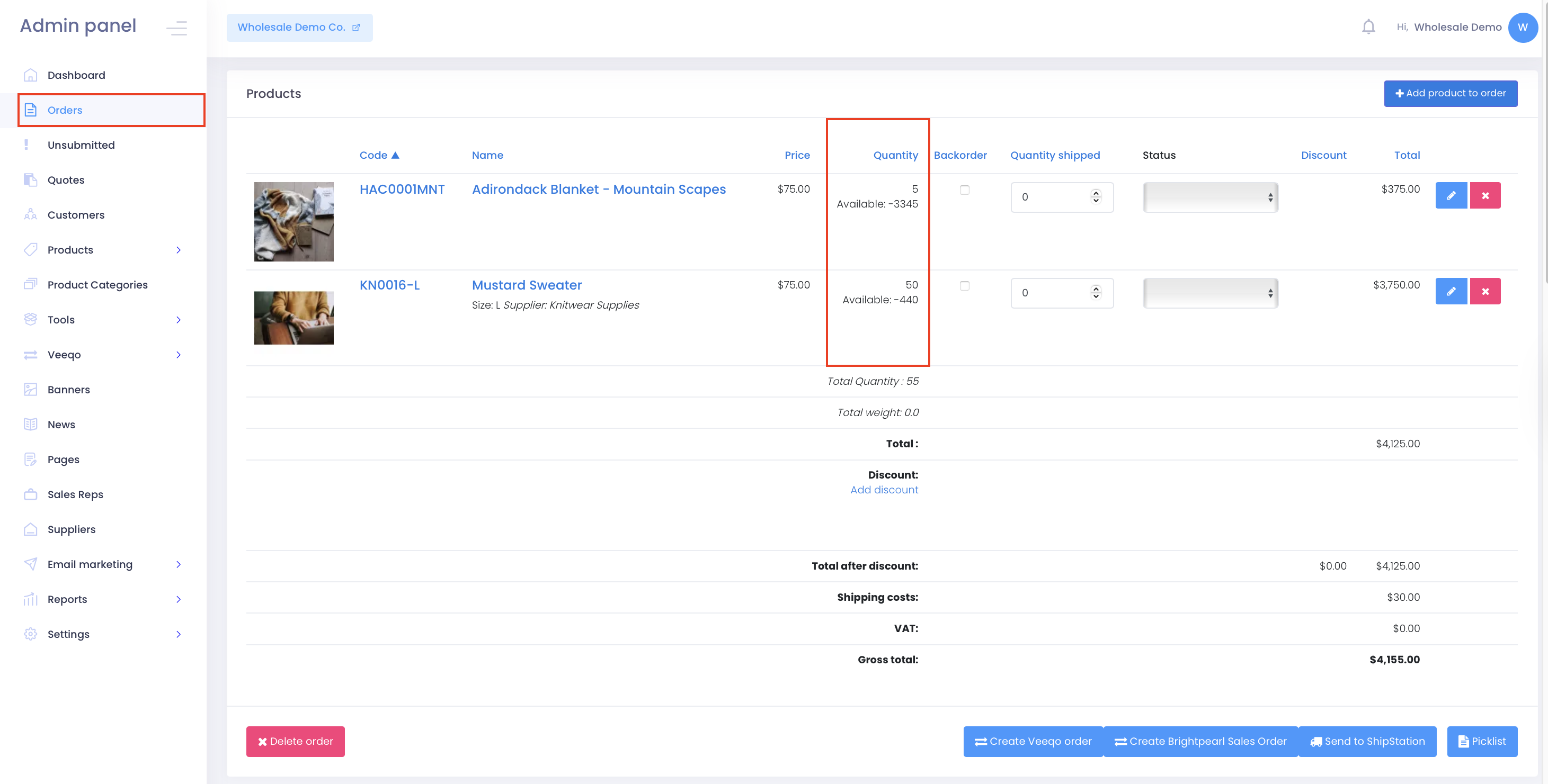 When this feature is enabled, B2B Wave automatically separates backordered items into a new order. This allows available products to ship without delay and reduces manual order handling.