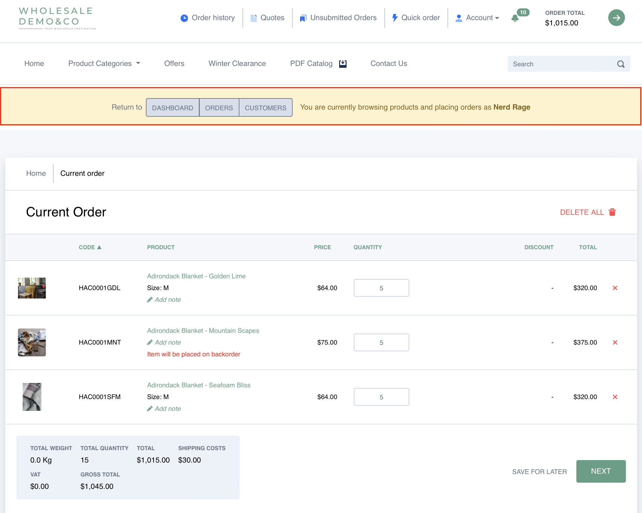 Sometimes, customers may exceptionally call you to place an order or email their order to you. On your B2B Wave eCommerce platform, you can either impersonate customers and place orders on their behalf or create an order directly through the Admin Panel. Let’s see how you can do this.